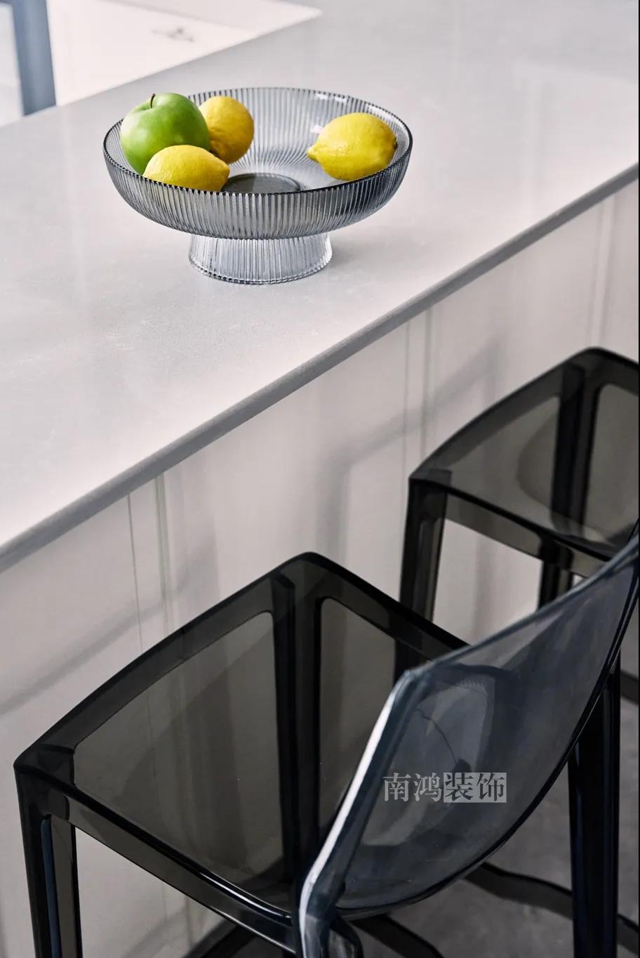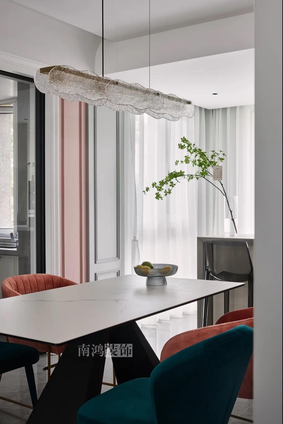 01. 客戶需求 本案的屋主非常喜歡小美式風格的清新自在,又向往著現代簡約所傳達的生活理念,所以設計師依照他的喜好,將兩種風格元素巧妙糅合,讓整體空間在浪漫優(yōu)雅的情調中傳遞出主人的獨特品味。 02. 裝飾亮點 REFRESHING 擯棄了粗暴的材質堆砌,將小美式與現代簡約巧妙結合在一起,色調上選用低飽和度的高級灰與柔和的莫蘭迪色,致力于呈現一個唯美純粹、具備高級感的美學空間。 03. 戶型圖 04. 設計落地 客 廳 客廳以高級灰為主基調,低飽和度的特性使得它具備很強的包容性。 電視背景將美式的經典線條護墻與利落的大理石磚組合,沙發(fā)背景則做了木護墻隱形門處理,配以簡單干凈又不減細節(jié)的吊頂,既實現了兩種不同風格元素的結合,又能讓造型為居家功能服務。 靠近陽臺擺放一把亮麗單椅,電子壁爐內躍動著溫暖的火苗,成為美妙的休憩一角。 節(jié)制而有意蘊的設計手法,賦予空間最具詩意的內涵表達。 開放的領域中,客餐之間連貫而又相對獨立,在敞闊的尺度中讓主人感受到家的舒適。 餐 廳 餐廳,是讓人走近便頓覺眼前一亮的空間所在。花朵般嬌嫩的煙粉色,是莫蘭迪色系中超有存在感的一派,又如晚霞,純凈美好,撲面而來便是夢幻與浪漫的氣息。 餐廳處還添加入西廚的功能,讓廚房實現多功能化,同時弱化了原區(qū)域的狹長感。 過 道 “人生忽如寄,莫辜負茶、湯和好天氣。”清朗平和的過道景致,自給人一種寧靜的深邃感受。 臥 室 臥室刪繁就簡,通過淺色的床品與干凈的硬包背景,營造簡約純粹的清韻。 兒童房是一個多姿多彩的空間,活潑的星星圖案,多種低飽和色調搭建的背景墻面,整體氣氛輕松愉悅,作為一個成長型空間來說也充滿著可塑性。 衣 帽 間 純白的視象,抽離了所有多余的表達,兩側衣柜默默擔當著收納的使命,井然有序地包容著一切冗雜。