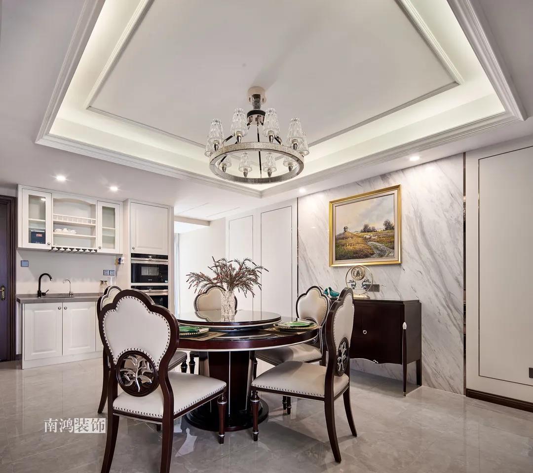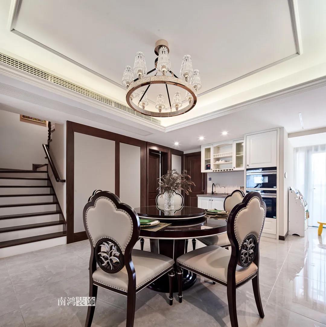 家里人口較多,基于實際需求考慮,使用圓桌是最合理的選擇。開放式操作臺兼做餐邊柜,中西結合的餐飲習慣也在這里得到了充分的體現。