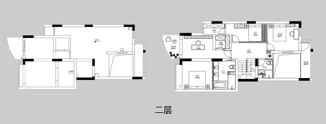 本案戶型面積較大,上下兩層加個露臺,地處市中心,常住人口為五人,家有三個孩子。業主本人偏好古典式的優雅莊重,但也喜歡現代風的簡約時尚,深思熟慮后最終確定了混搭的一個設計主題,中西結合,凸顯個性。
